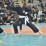 Arriviamo in hotel circa alle 8, dopo un rapido check-in siamo corsi su e abbiamo sfruttato la mezzora che ci avanzava per ricaricare (anche se di poco) le pile. Premettendo che le strade a Torino sono un incubo, abbiamo constatato che lì i semafori ci odiano, ma alla fine riusciamo ad arrivare in palazzetto e a fare il saluto e il riscaldamento guidato da diversi maestri e istruttori. Dopo il riscaldamento ci dividono per grado e iniziano i diversi stage. La Gloria, la Giorgia ed io eravamo con il maestro portoghese Felipe che ci insegnava una forma con il bastone corto, la mattinata è stata molto intensa, nonostante fosse la prima volta che approcciavo il bastone corto ho apprezzato molto questo tipo di arma e le applicazioni a coppie che ci ha fatto fare il maestro.